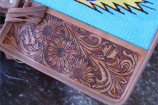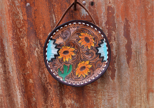 Amy Sunflower Hand Tooled Round Canteen Bag
