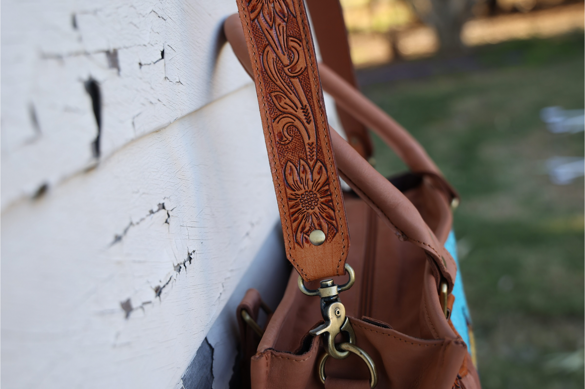 - Hand-tooled genuine leather with floral detailing