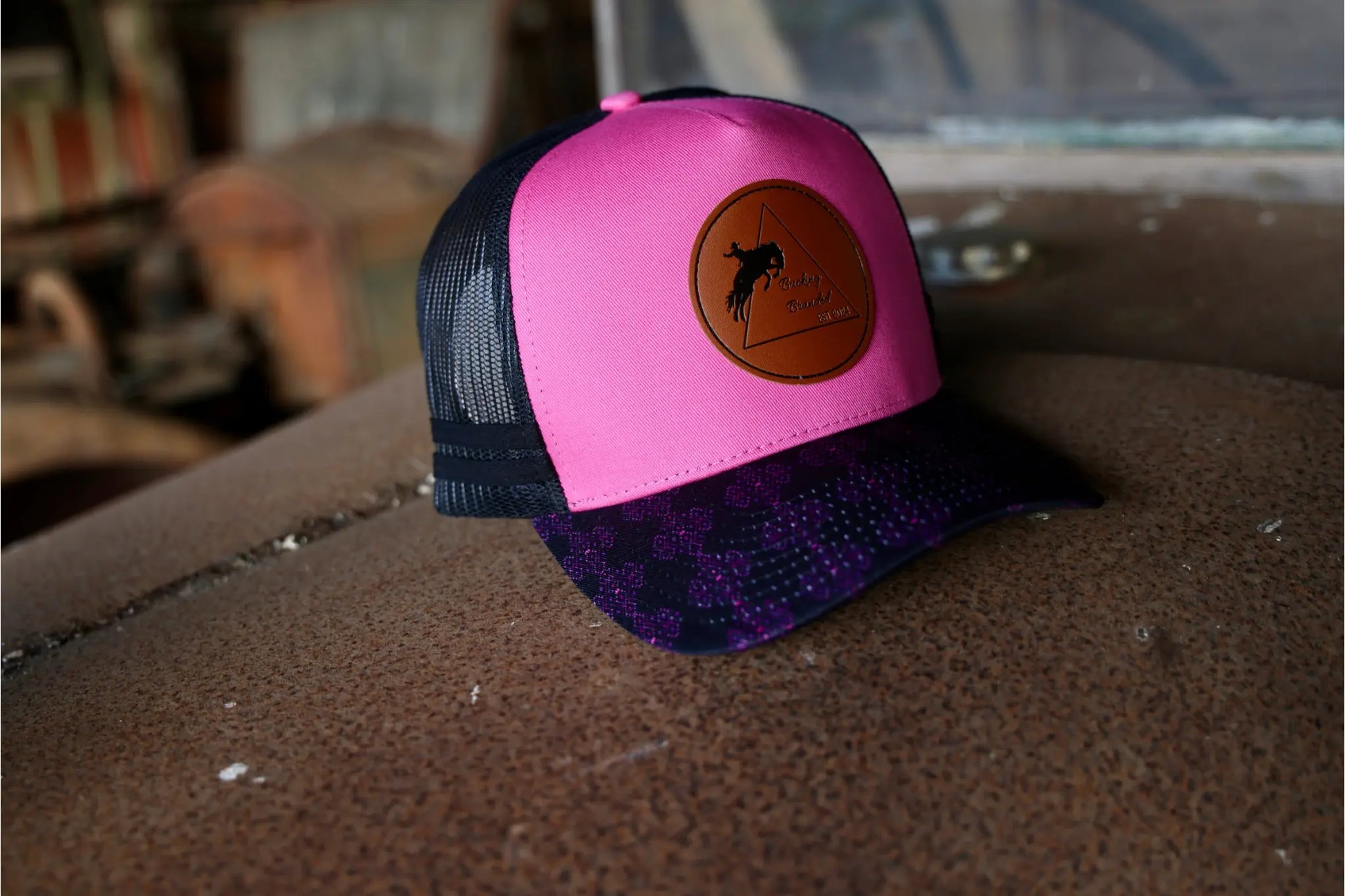 Stand out from the herd with the Bucking Branded Trucker Cap, a bold blend of grit and style. This eye-catching cap features a hot pink front panel accented with a rugged black mesh back for breathability and all-day comfort. The black bill adds a punch of edge and contrast, while subtle patterning lends a unique texture.