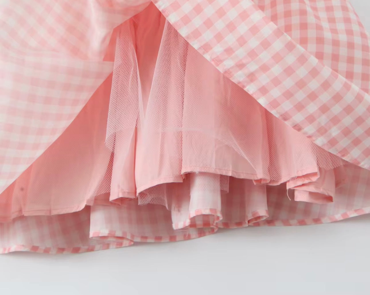 This stunning pink gingham mini dress features a back fly zip.