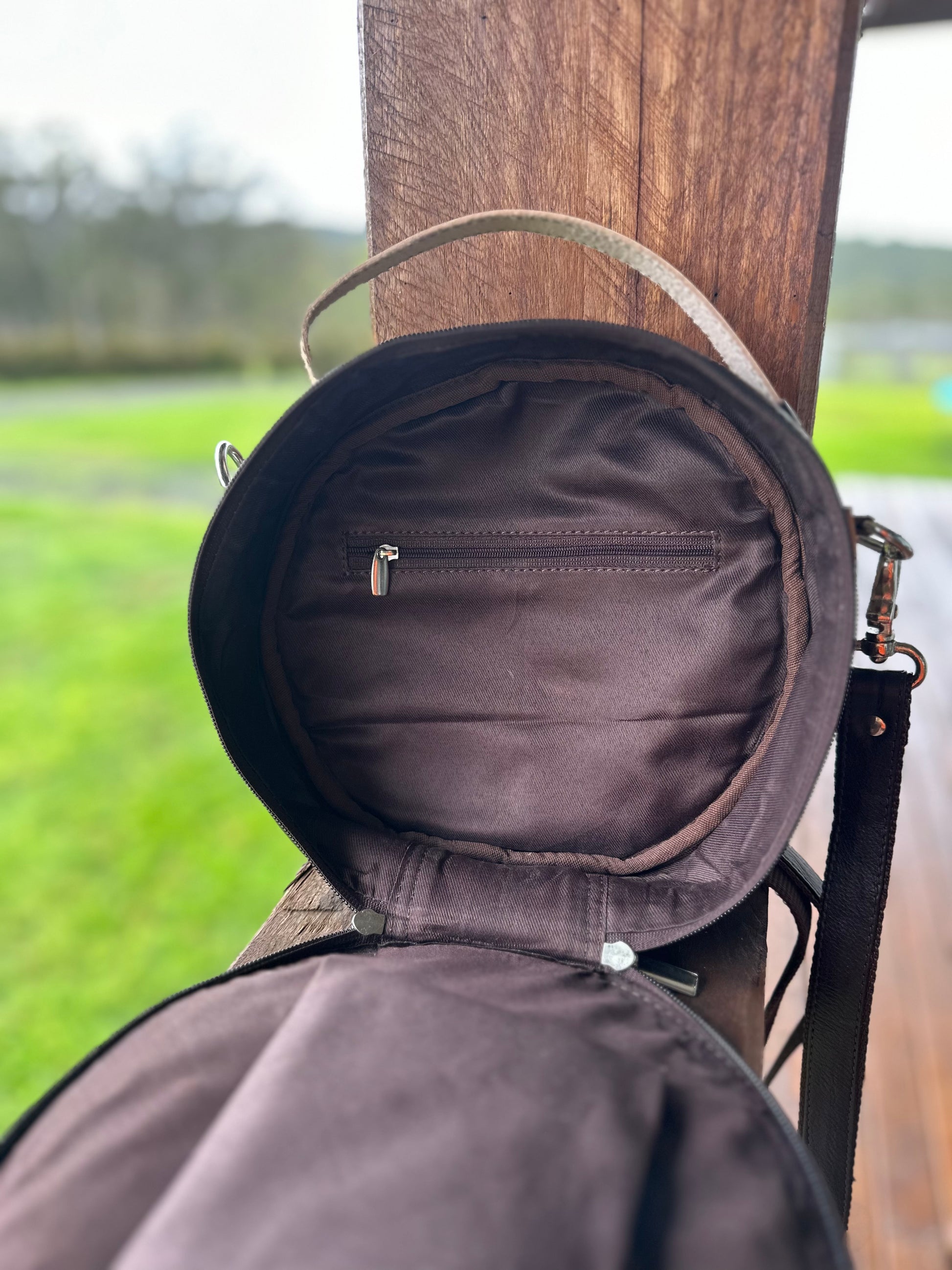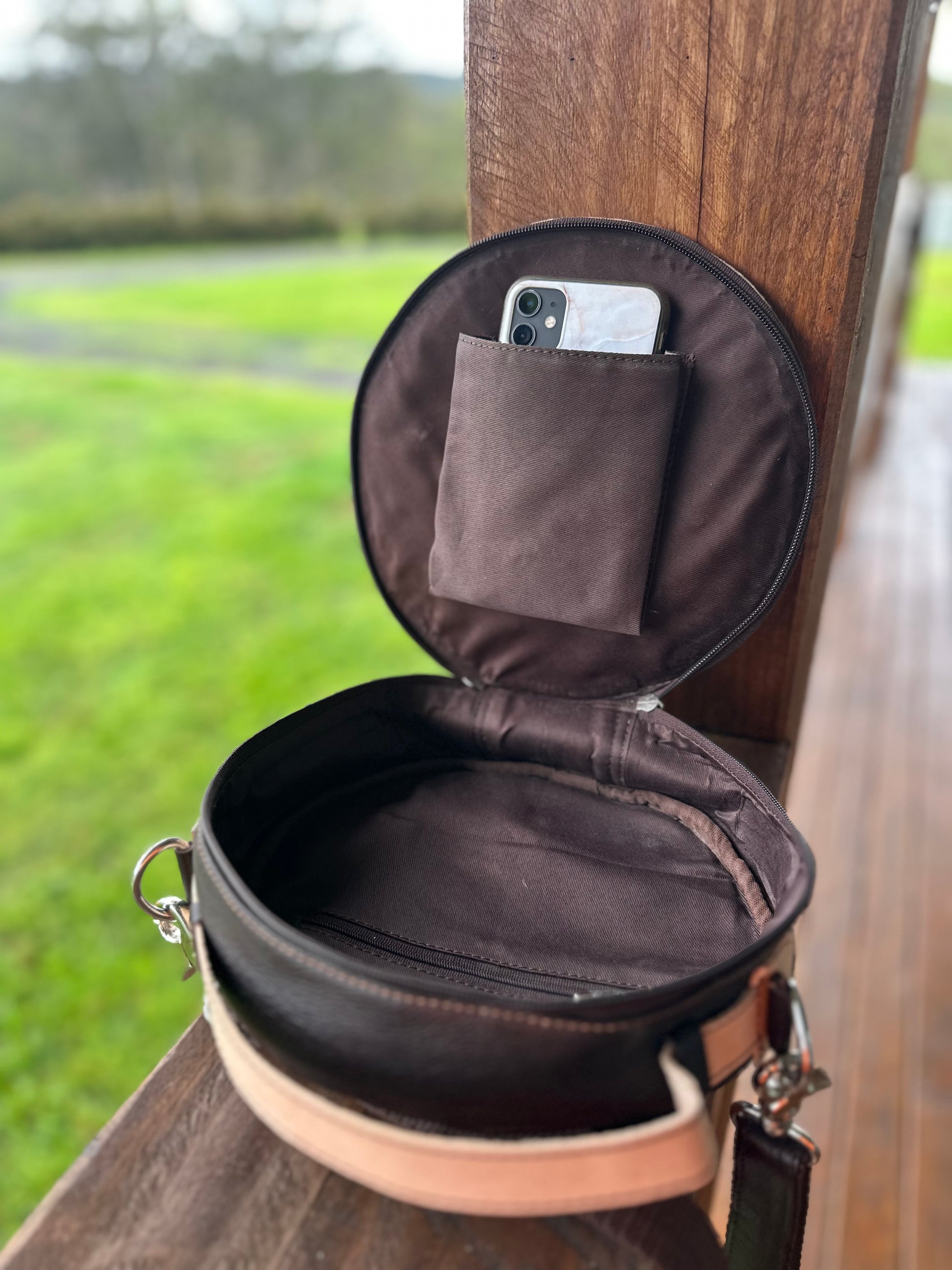 Floral Fever Bag Round Hand-Tooled Leather Canteen Bag