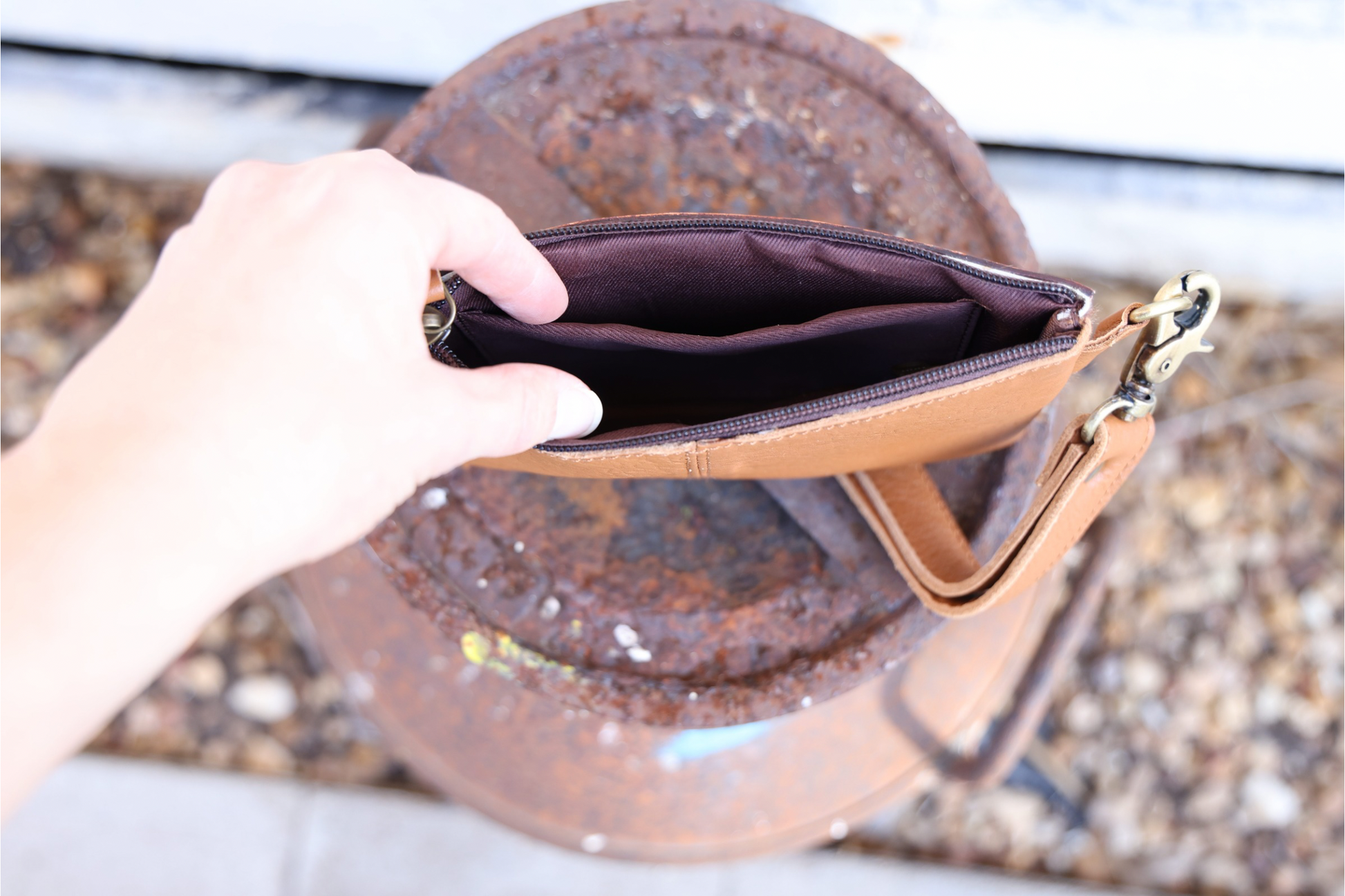Inside, you’ll find a fully lined interior with organized compartments, offering just the right amount of space for your phone, cards, cash, and keys.