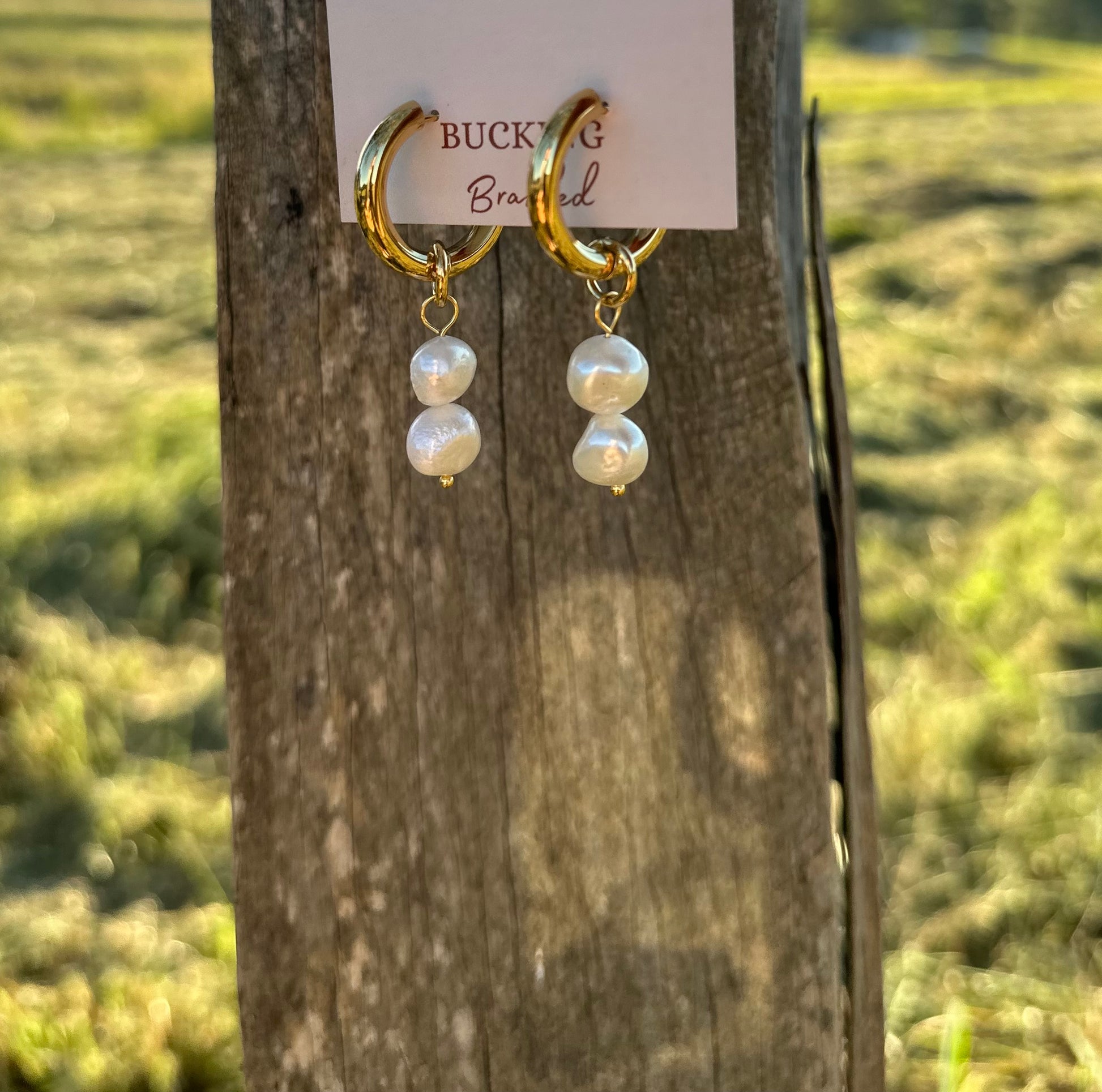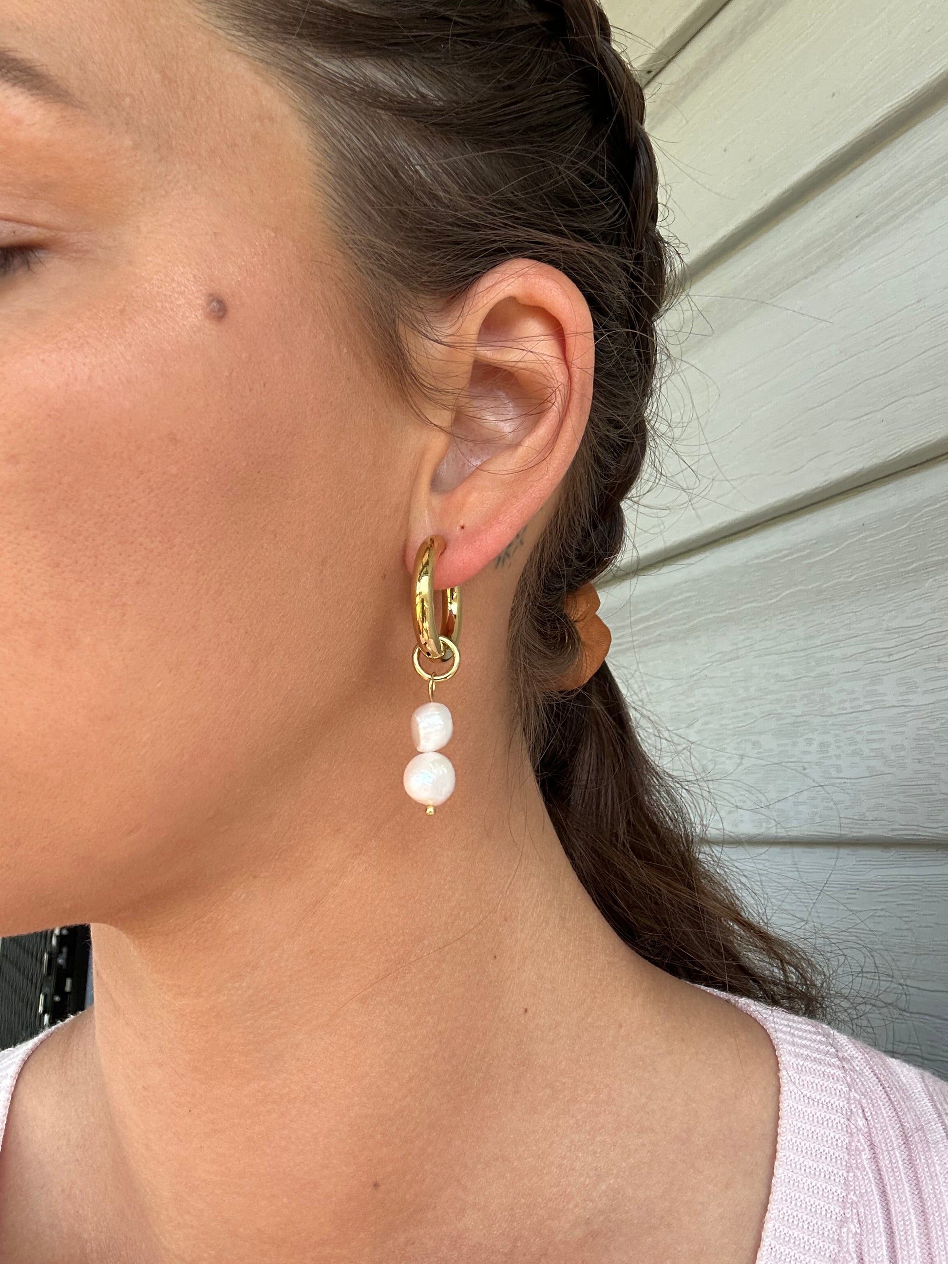 Add a classy touch to your outfit with these False Baroque Pearl hoop earrings.