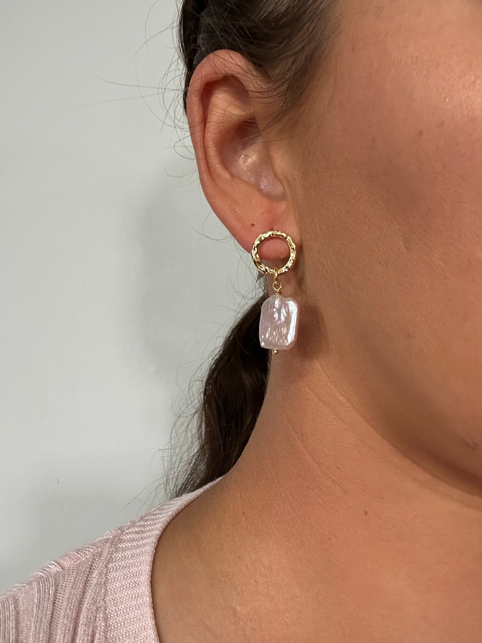 These 18k gold-plated studs feature a cluster of freshwater pearls around centre, forming a geometric shape inspired by petal and leaf elements. An elegant reinterpretation of the shapes we find in nature, these studs are perfect for bringing a delicate, floating feel to your everyday looks.