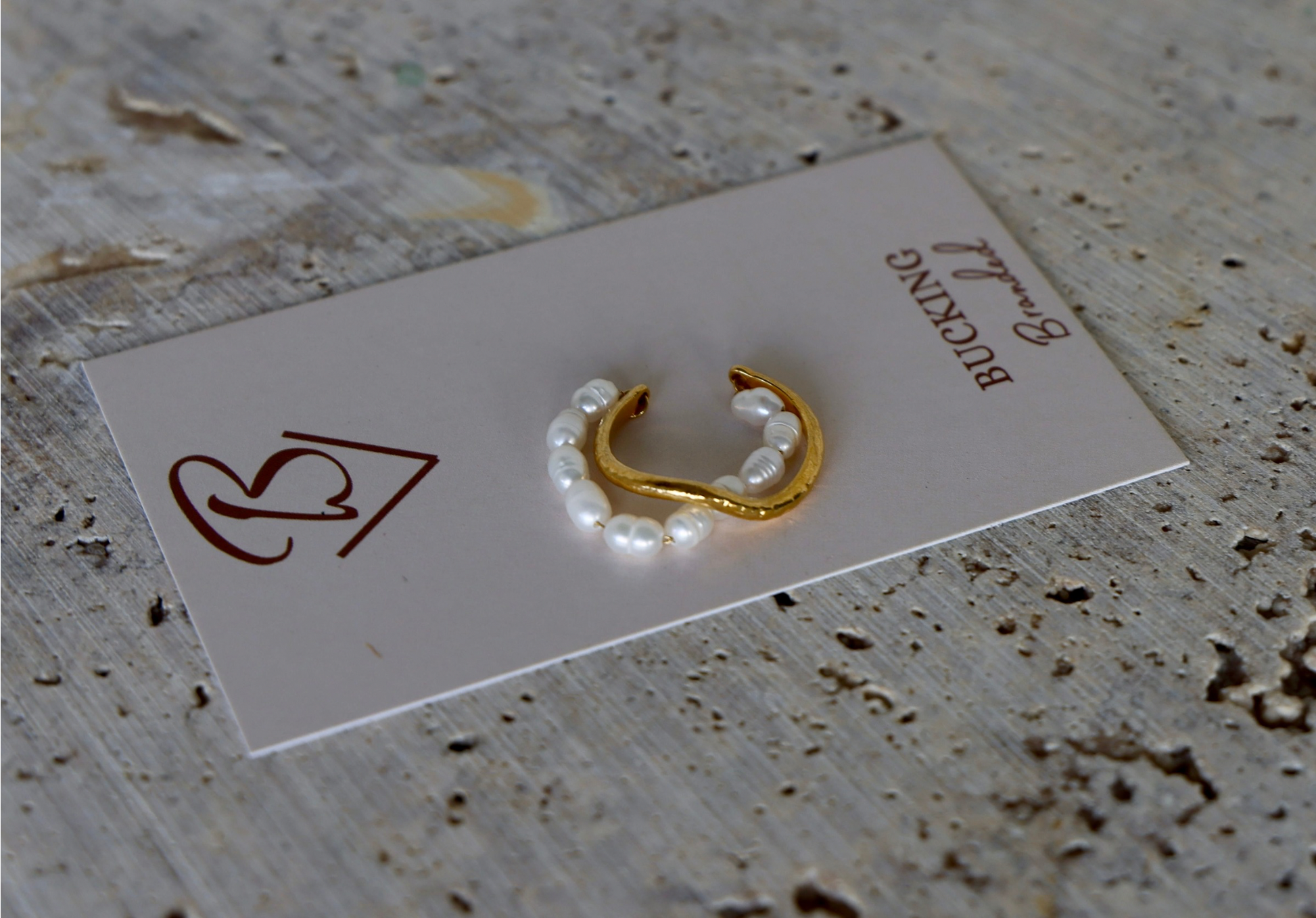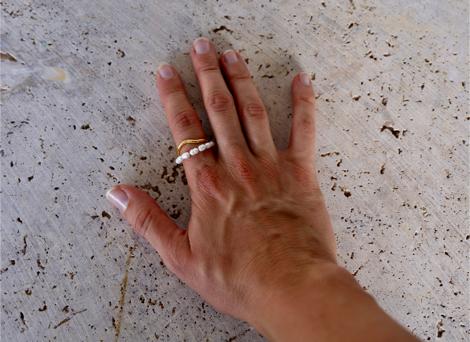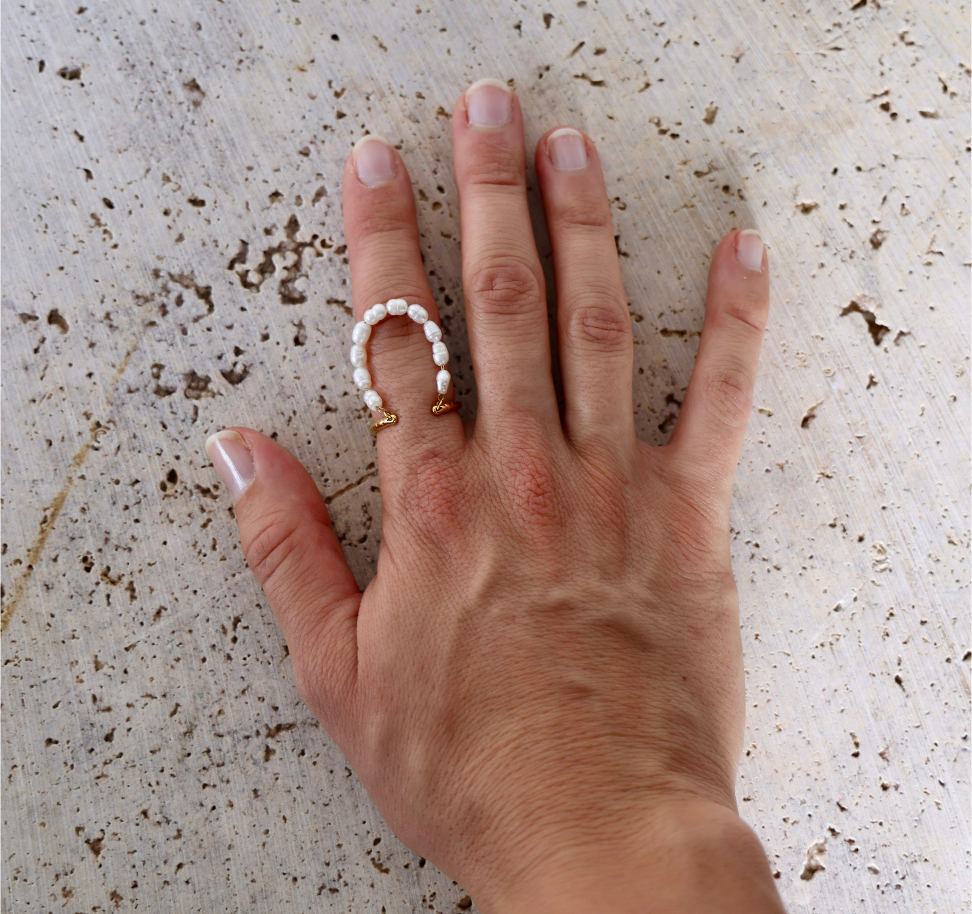 Stunning Gold-Plated Freshwater Pearl adjustable, open back ring.