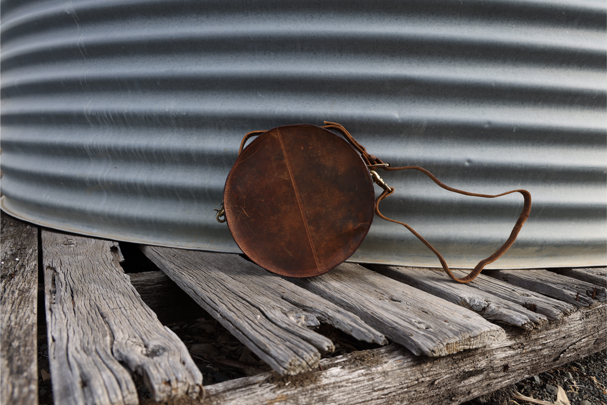 Celebrate timeless craftsmanship and bold Southwestern style with this one-of-a-kind hand-tooled leather crossbody bag. Designed with a circular silhouette, the front panel features a vibrant Navajo-inspired wool pattern in golden yellow, turquoise, crimson, and black—contrasted by intricately hand-carved floral leatherwork through the center.