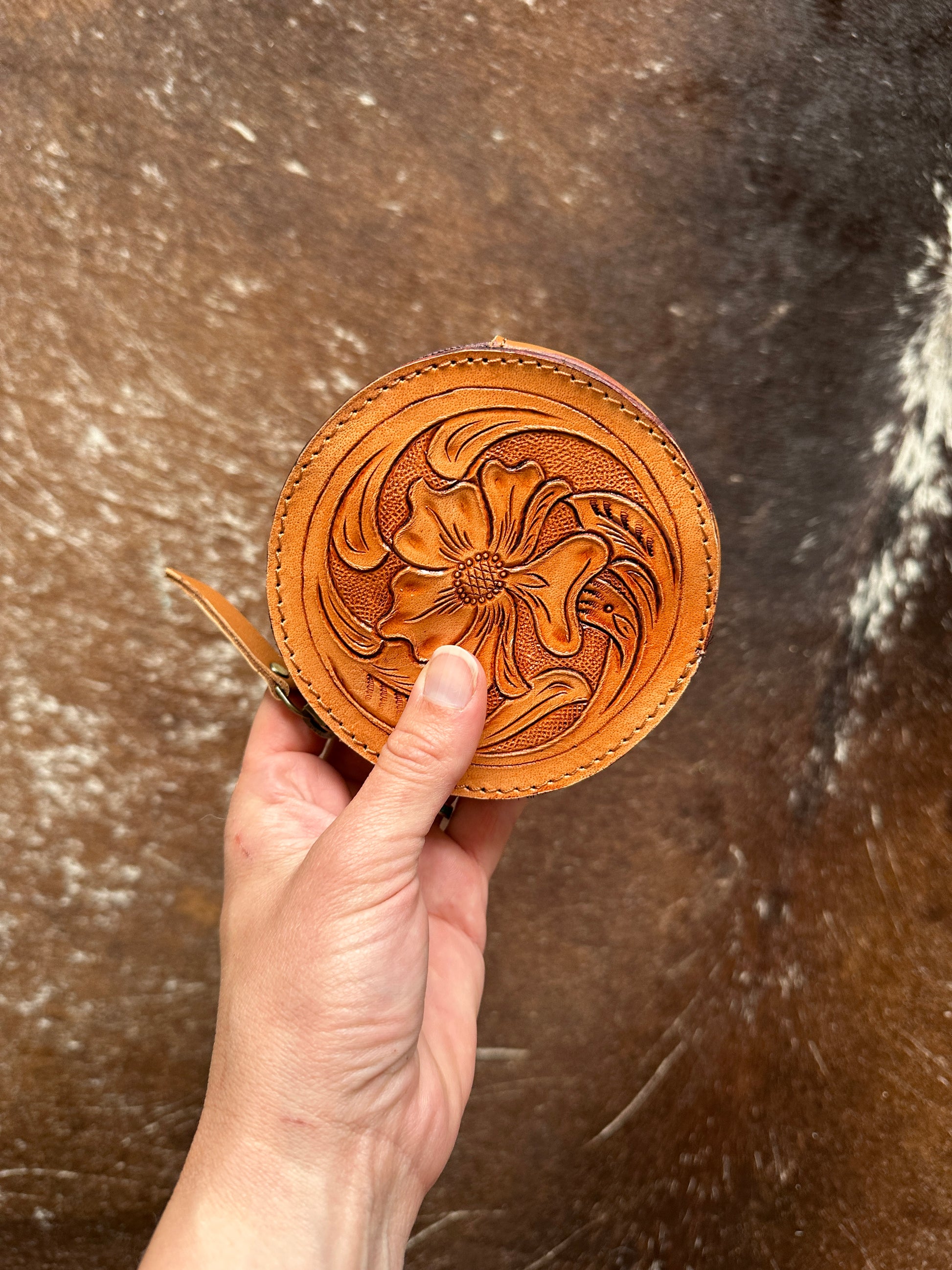 Hand-Tooled Leather Coin Purse – Wildflower Round