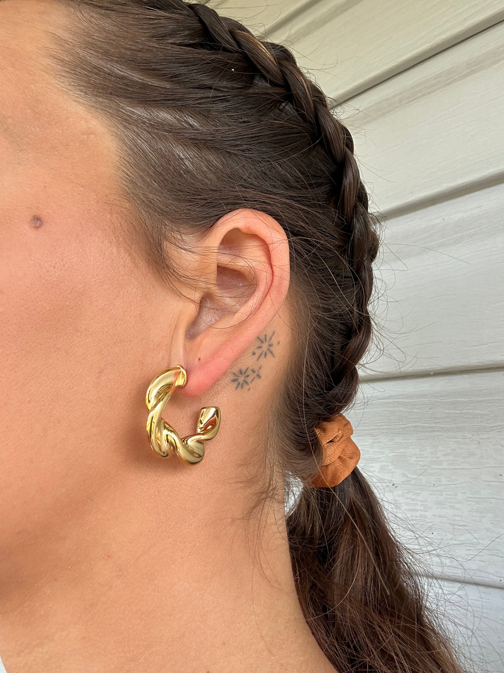 Crafted of our 14k gold-plated unique metal blend, these hoop earrings feature a twisted profile.
